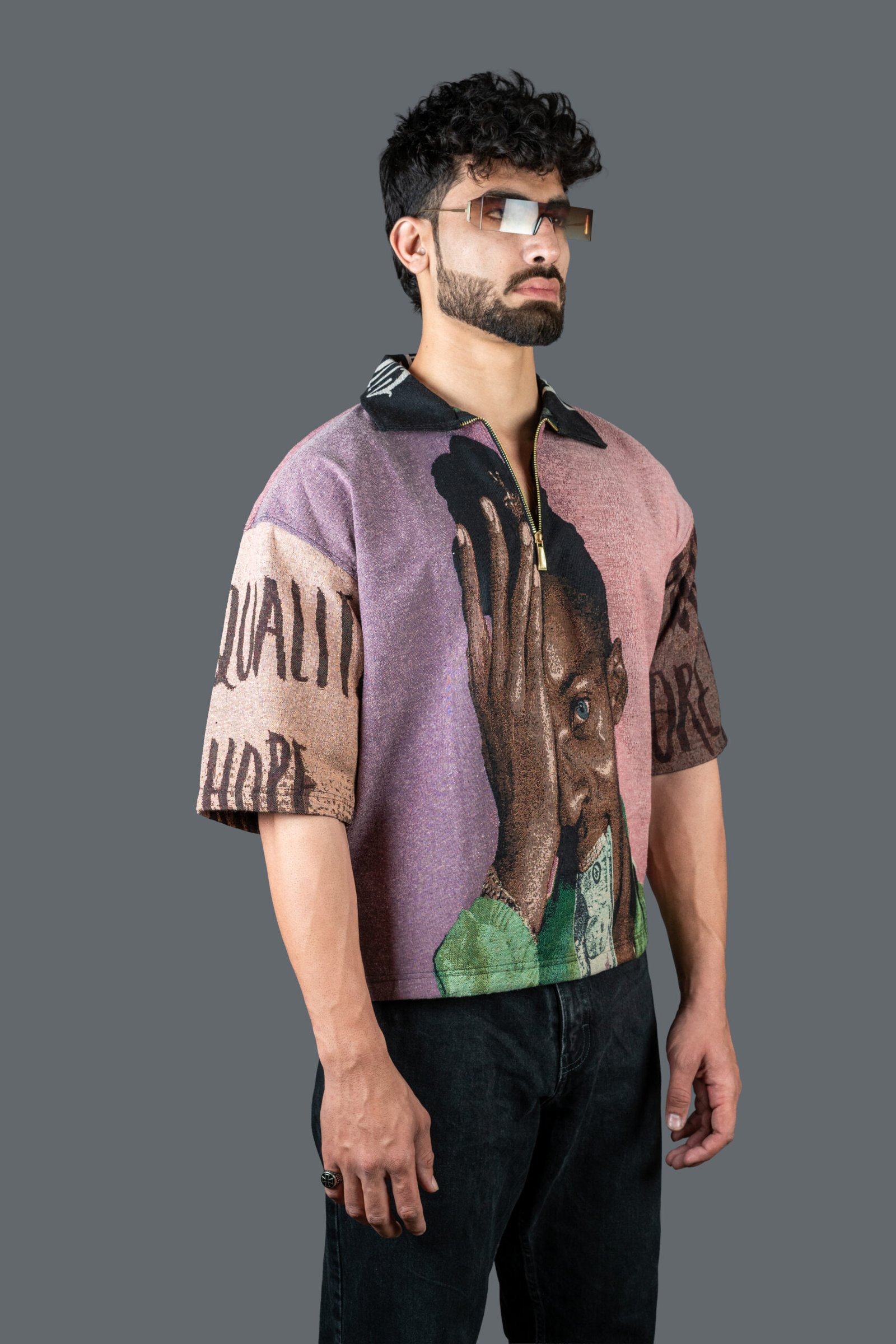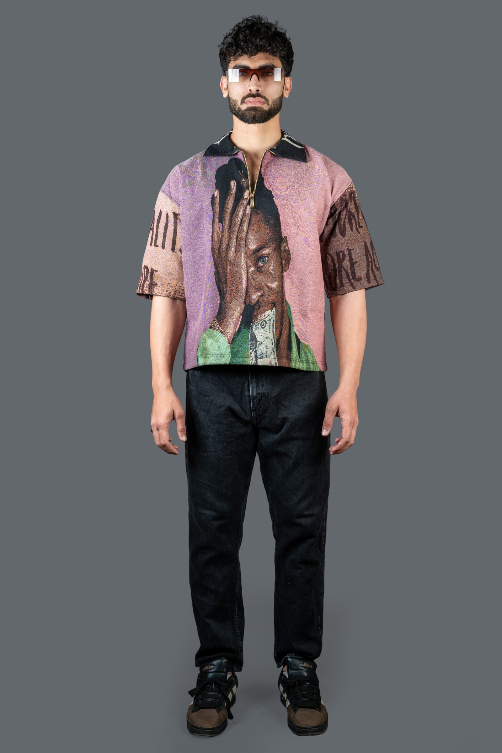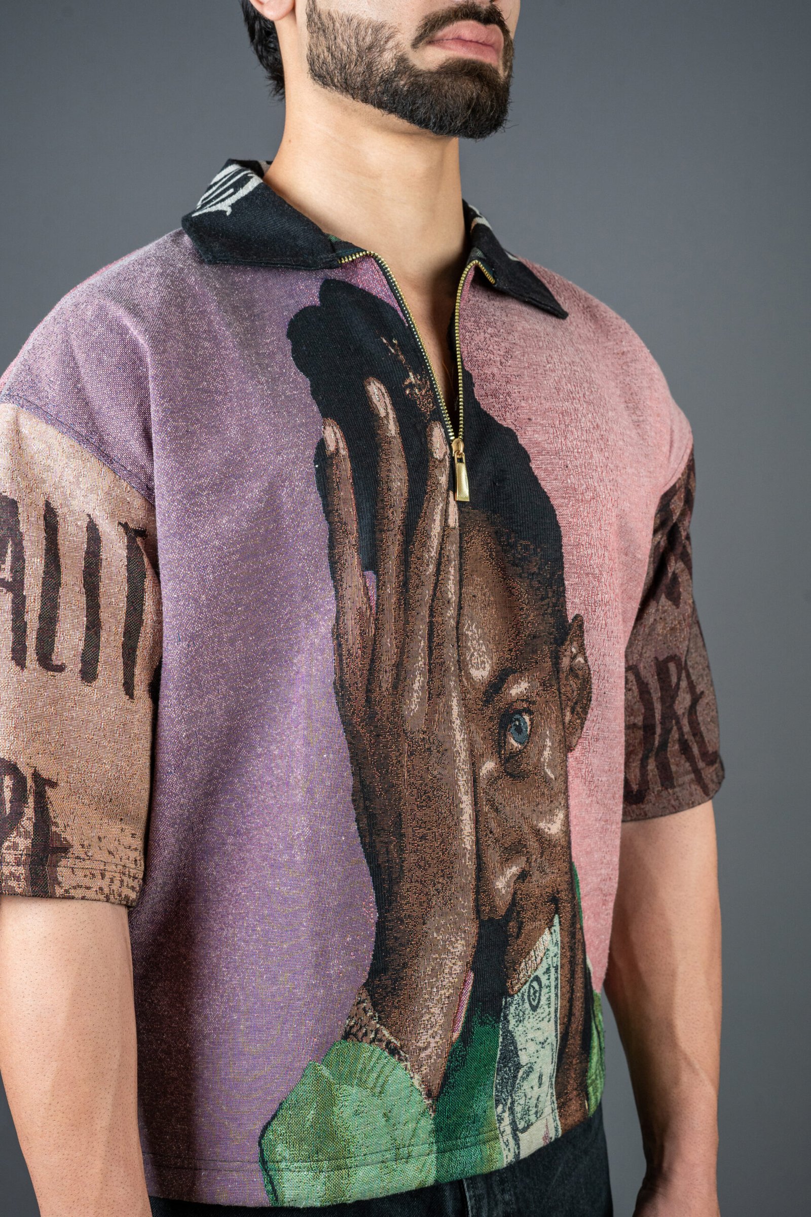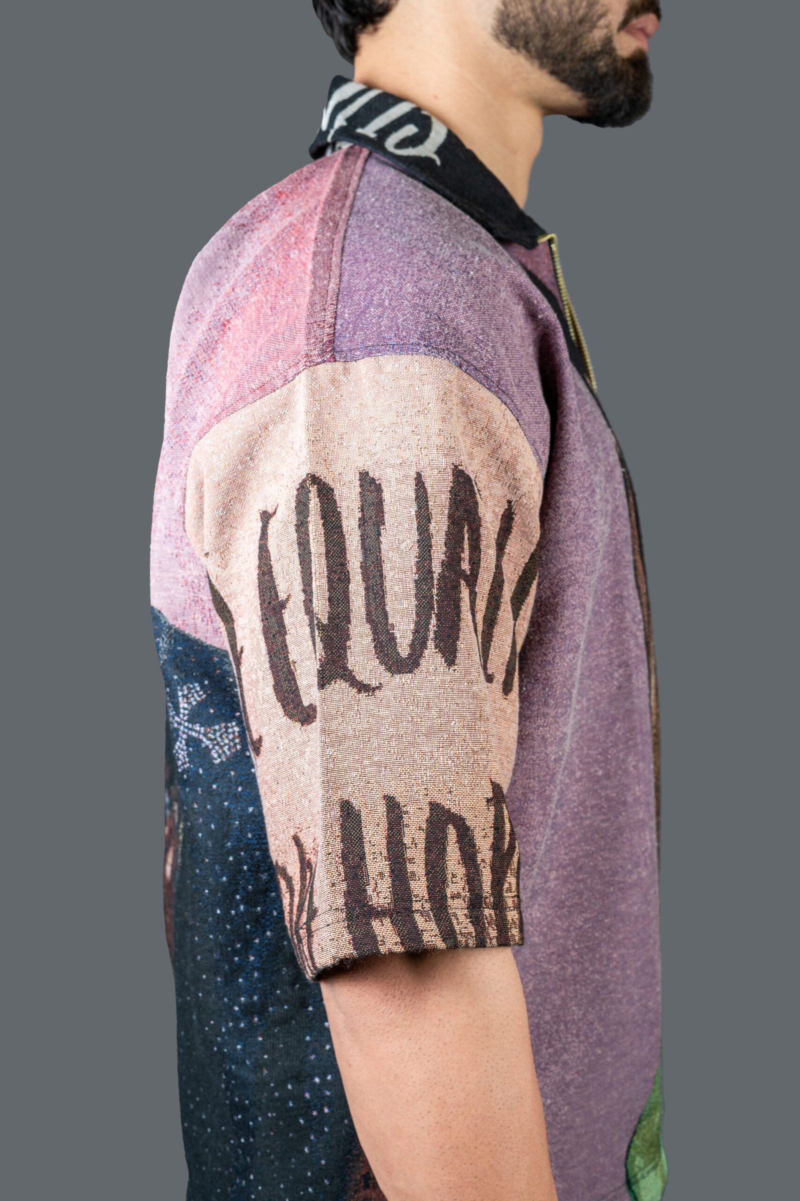 Every DIENOS piece is crafted using tapestry weaving, where the design is built directly into the fabric using threads — not ink, not surface prints. The result is a textured, dimensional garment that looks different, feels different, and ages better than ordinary t-shirts.
